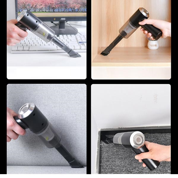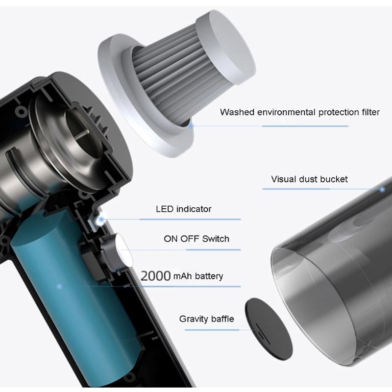 Den ledningsfrie bilstøvsuger på 6000Pa er et kraftfuldt, bærbart rengøringsværktøj, der er designet til at holde din bil, dit hjem og dit kontor pletfrit. Med 120W højtydende sugning og et vakuumtryk på 6000Pa fjerner den effektivt støv, krummer, dyrehår, sod og selv små vandpletter. De medfølgende multifunktionelle børstehoveder når ind i snævre åbninger, bilsæder, gulvmåtter og bagagerum for en grundig rengøring. Den er let og ledningsfri og leverer op til 30 minutters kontinuerlig brug på en fuld opladning, drevet af et 2000 mAh genopladeligt batteri. Den store støvkop på 0,5 liter betyder mindre hyppig tømning, mens USB-opladning giver praktisk strøm fra adaptere, powerbanks eller bilopladere.