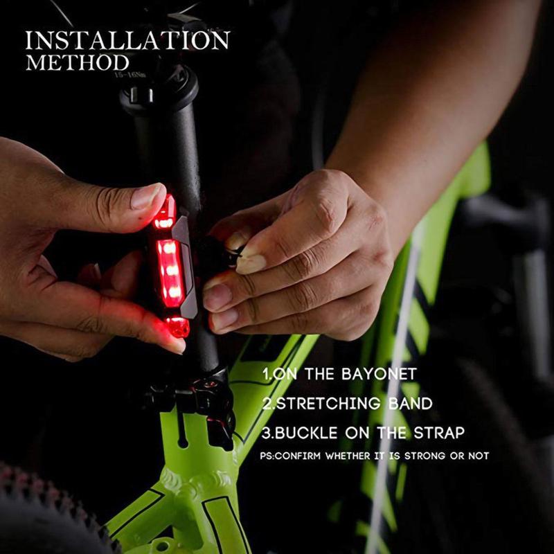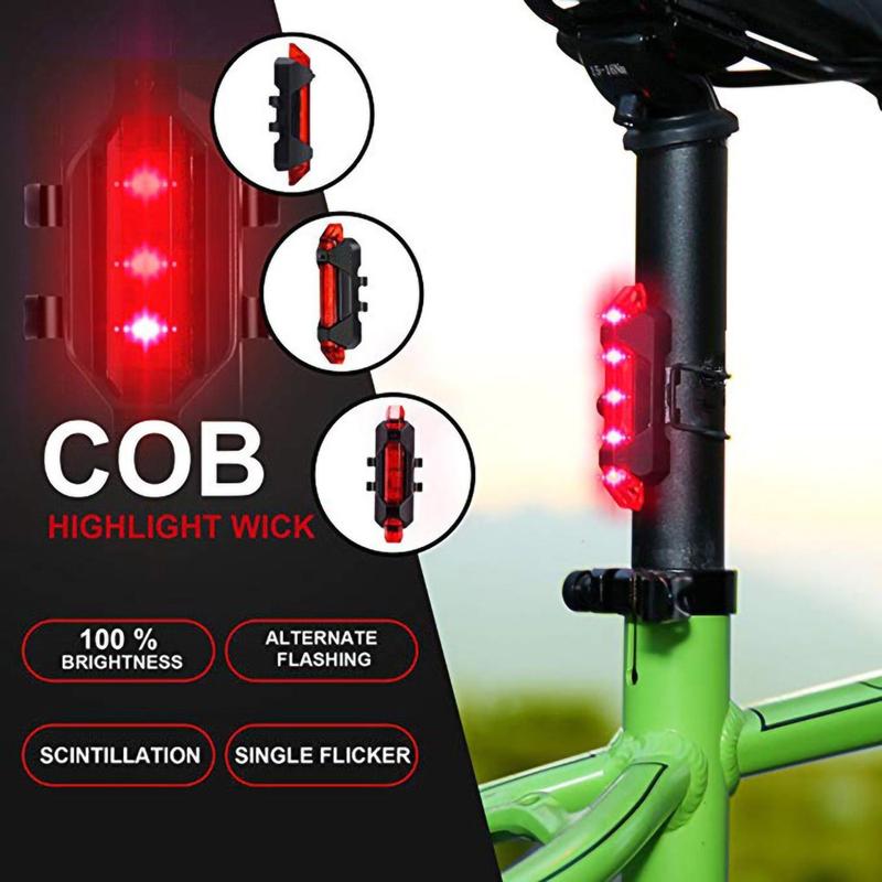 Vandtæt USB-opladelig flash-baglygte, advarselscykellygter, automatisk nedlukning ved fuld belastning
