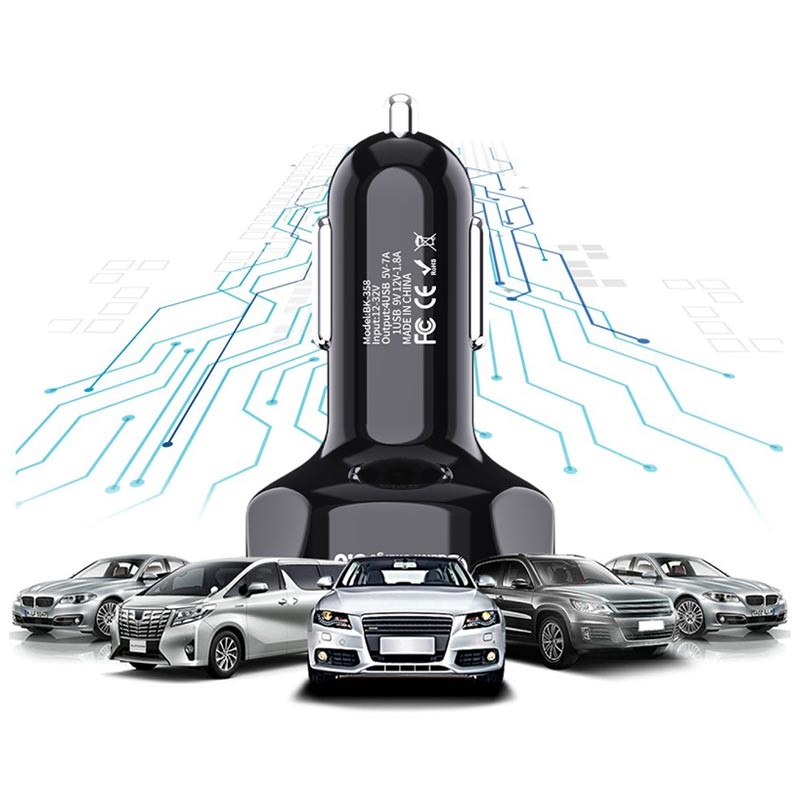 Egnet til smartphones, tablets, GPS navigatører, power banks, og andre genopladelige elektroniske enheder. Quick Charge 3.0 port understøtter endnu hurtigere opladning til kompatible enheder. Farverige output USB porte og LED oplader indikatorer vil shine din bils indre op. Du skal ikke bekymre dig om din enheds sikkerhed, for BK-358 bilopladeren har adskillige former for beskyttelse af kredsløb.