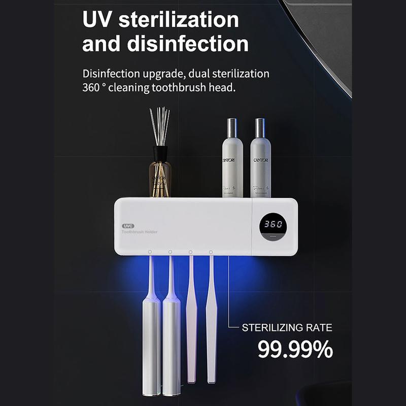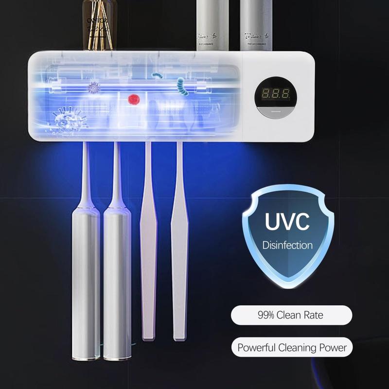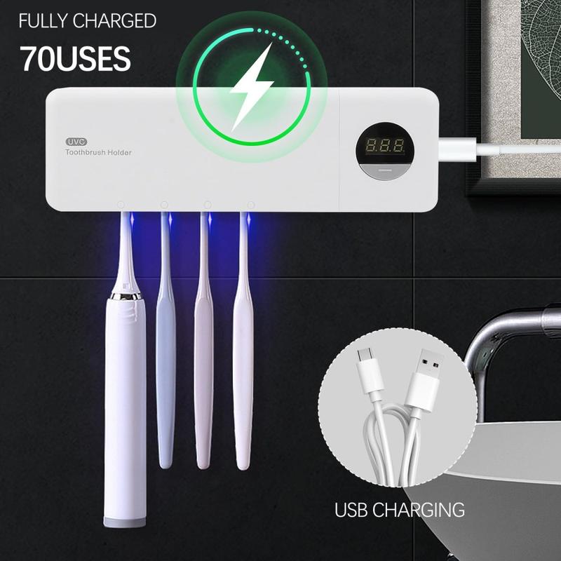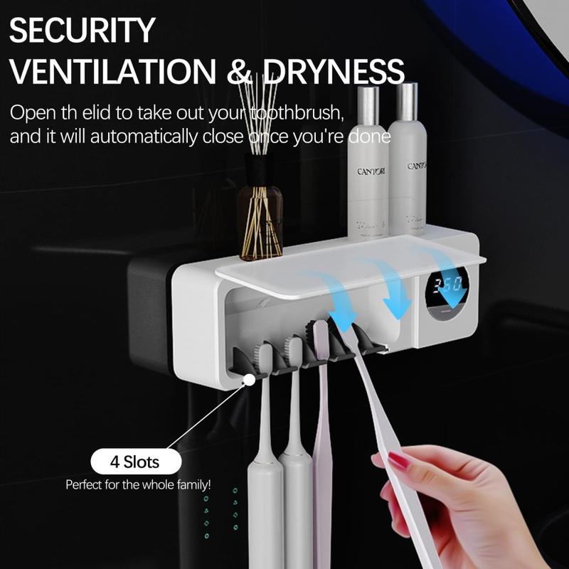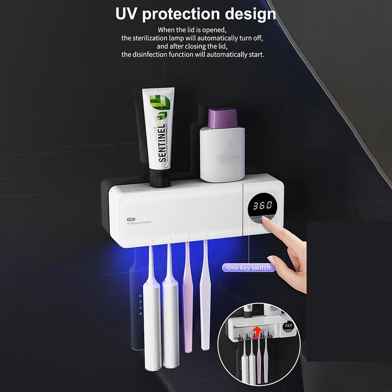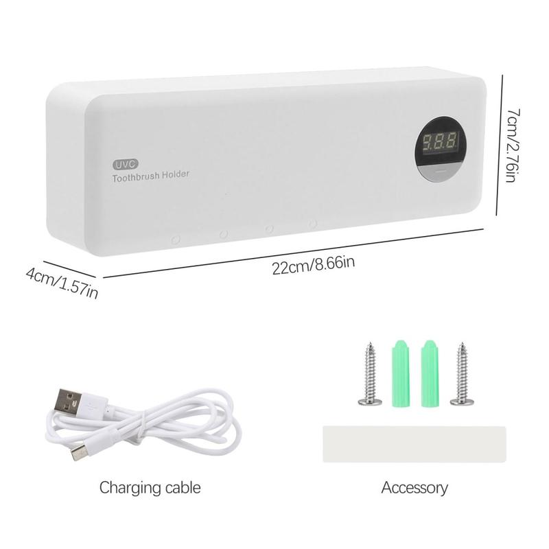 UV-sterilisator til tandbørster - vægmonteret tandbørsteholder med automatisk sensor og digitalt display