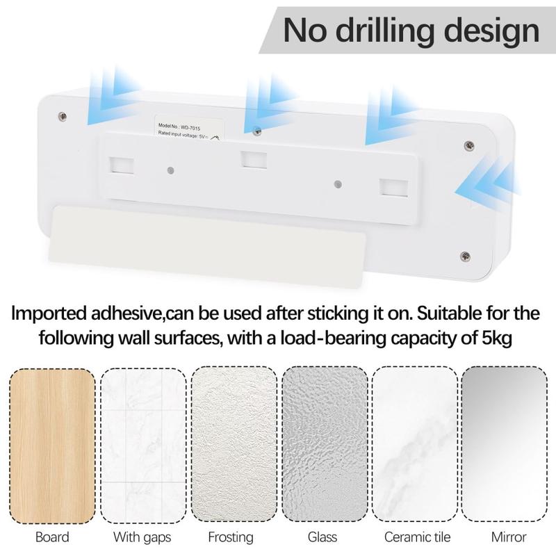 - Vægmonteret design - Nem selvklæbende installation sparer plads, kræver ingen boring og beskytter badeværelsesvæggene.