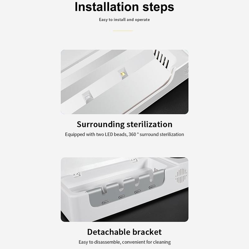 Denne UV-sterilisator kombinerer hygiejne, bekvemmelighed og smart design i én enhed. Den beskytter ikke kun din tandbørste mod skadelige bakterier, men holder også dit badeværelse pænt og organiseret. Den automatiske betjening gør det nemt for familier, børn og travle fagfolk at opretholde en ordentlig mundhygiejne uden besvær.