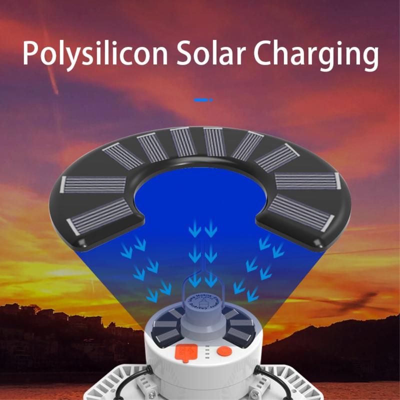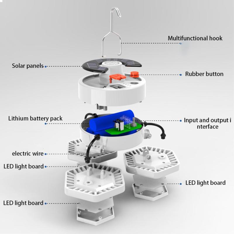 Oplys campingpladser, garager eller nødhjælpskasser med V126: en smart lampe med tre paneler, der kan foldes ud til et 360 ° fyrtårn og samtidig pakkes fladt sammen til rejser. Den drives af tre 18650-celler, oplades af solen eller en hvilken som helst USB-port og kan også bruges som powerbank til telefonen. En ophængningskrog, LED'er på batteriniveau og den medfølgende fjernbetjening gør håndfri belysning ubesværet både ude og inde.