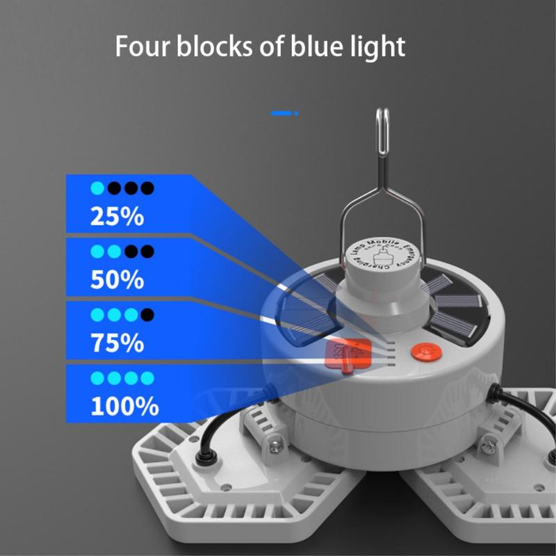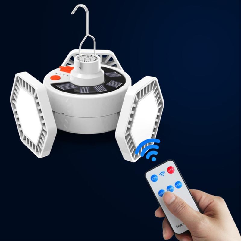 V126 solcelledrevet campinglanterne - 3-blads foldbar LED-lygte og powerbank, USB/solopladning, fjernbetjening (126 LED'er)