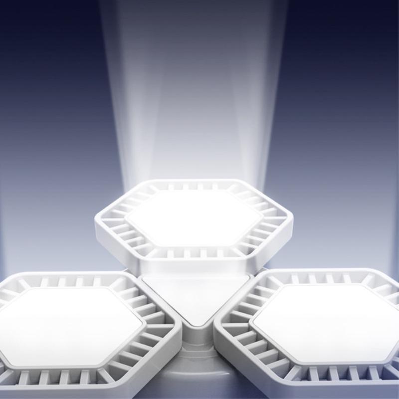 - Tredobbelte vidvinkelpaneler - 3 sammenklappelige "blade" beklædt med 126 højtydende LED'er bader store områder i ensartet lys.