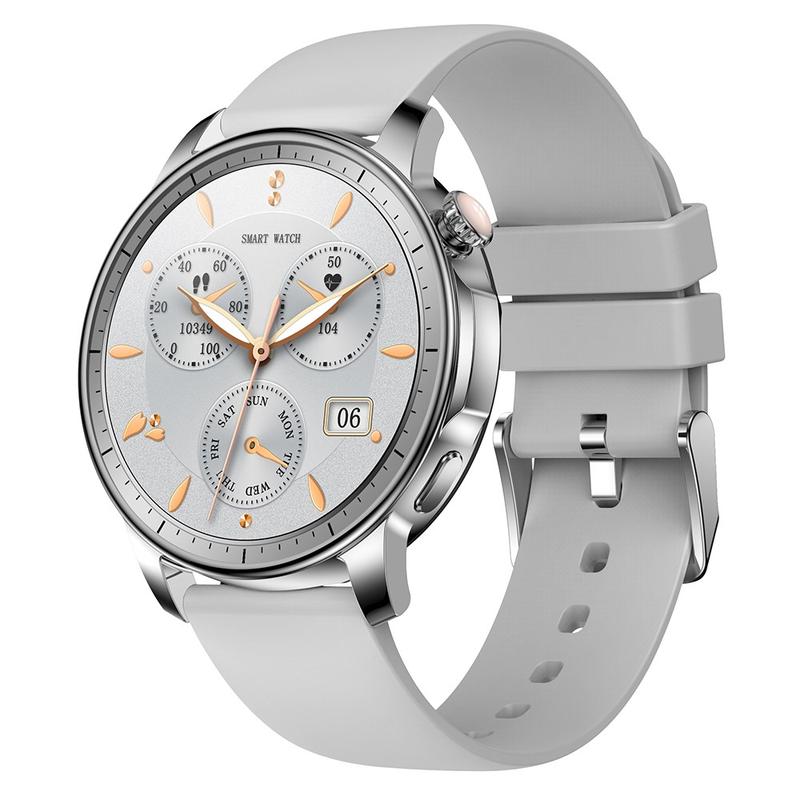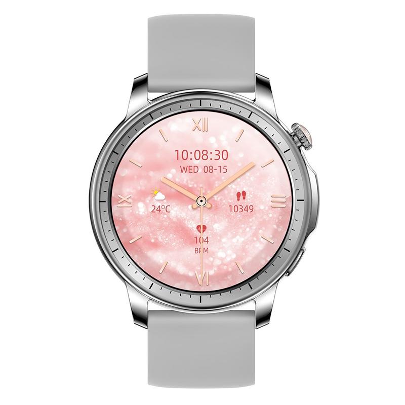 V65 1,32-tommer AMOLED Touch Screen Smart Watch Pulsmåler Kvinder Sportsarmbånd, Silikone Rem - Sølv