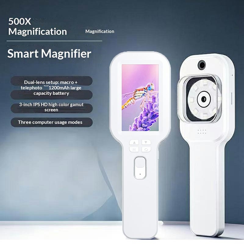 Den håndholdte digitale lup V8 500X er et kraftfuldt og bærbart værktøj, der er designet til detaljeret observation, inspektion og dokumentation. Med en klar 3-tommers IPS HD-skærm, høj forstørrelsesgrad og et system med to linser kan du undersøge fine detaljer uden at anstrenge øjnene. Den er kompakt og nem at bruge og er ideel til professionel vurdering, elektronikarbejde og hobbyudforskning.