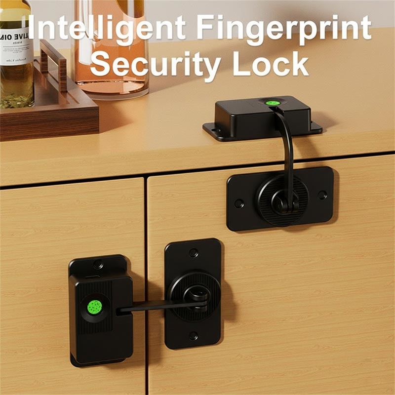 V86 børnesikring med fingeraftryk giver pålidelig, manipulationssikker sikkerhed med hurtig biometrisk oplåsning, fleksibel installation og lang batterilevetid - perfekt til at beskytte børn, kæledyr og værdigenstande i hele hjemmet.