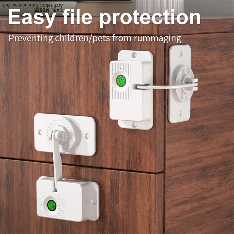 V86 børnesikring med fingeraftryk giver pålidelig, manipulationssikker sikkerhed med hurtig biometrisk oplåsning, fleksibel installation og lang batterilevetid - perfekt til at beskytte børn, kæledyr og værdigenstande i hele hjemmet.