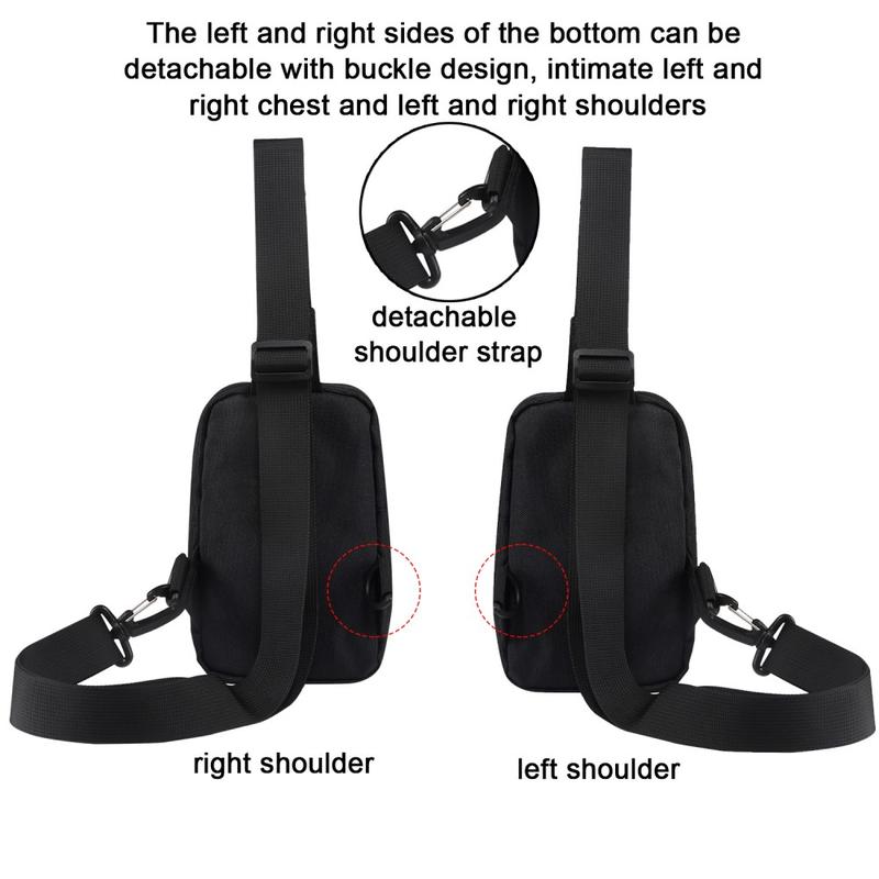 Bær nemt din telefon og andre vigtige ting i denne bryst- og skuldertaske i vandafvisende nylon. Den er designet til afslappet brug eller rejser og passer til telefoner på op til 7,2 tommer og giver beskyttelse og stil. Den justerbare rem og det lette design sikrer komfort, mens det slidstærke nylonmateriale beskytter dine ejendele mod vind og vejr.
