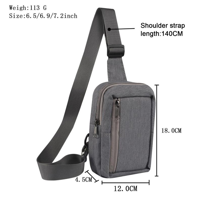 Bær nemt din telefon og andre vigtige ting i denne bryst- og skuldertaske i vandafvisende nylon. Den er designet til afslappet brug eller rejser og passer til telefoner på op til 7,2 tommer og giver beskyttelse og stil. Den justerbare rem og det lette design sikrer komfort, mens det slidstærke nylonmateriale beskytter dine ejendele mod vind og vejr.