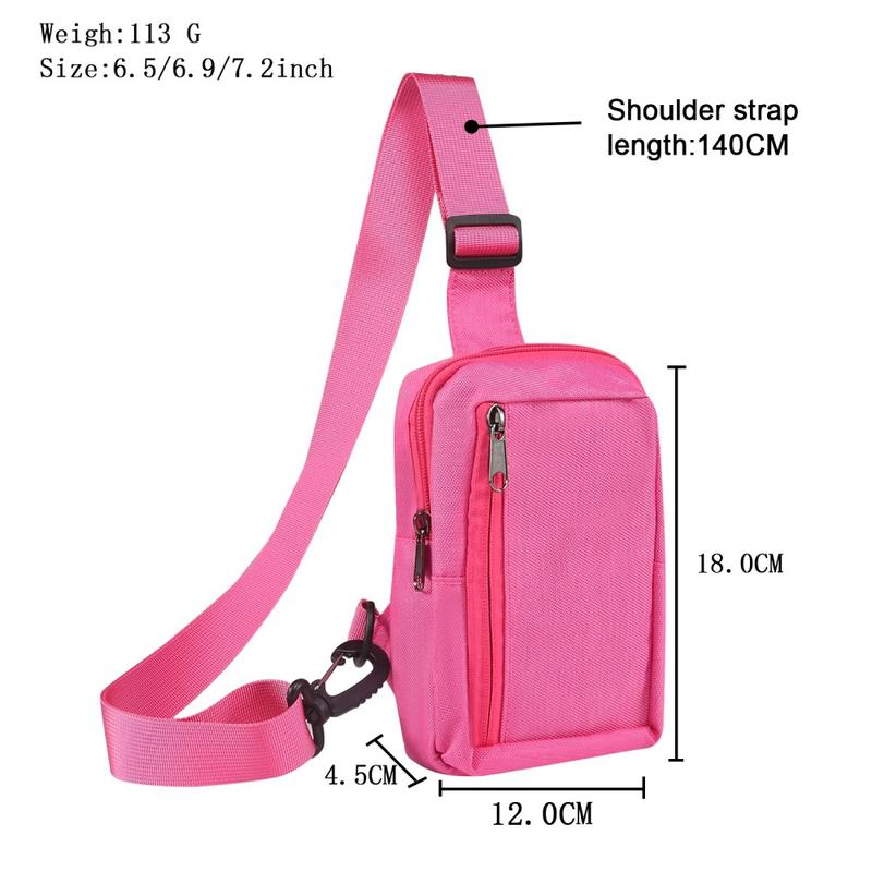 Vandafvisende bryst- og skuldertaske i nylon - passer til 6,5"- 7,2"-telefoner - pink