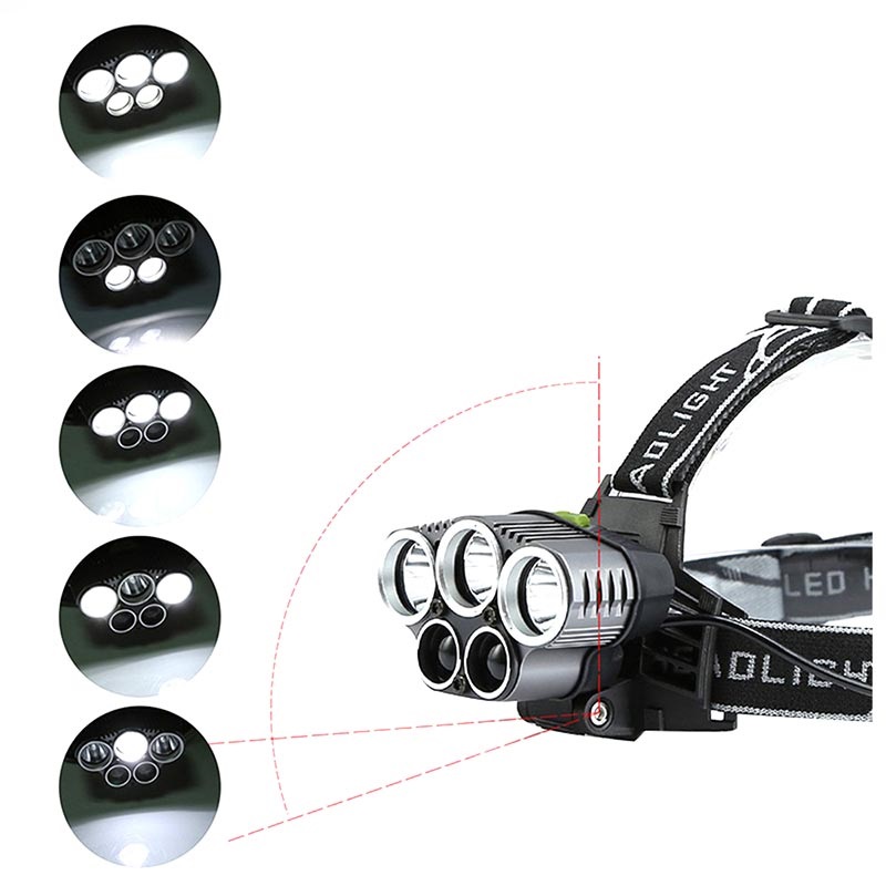 Vandafvisende Super Bright LED Pandelampe 5000LM - 3x T6, 2x XPE, IPX6