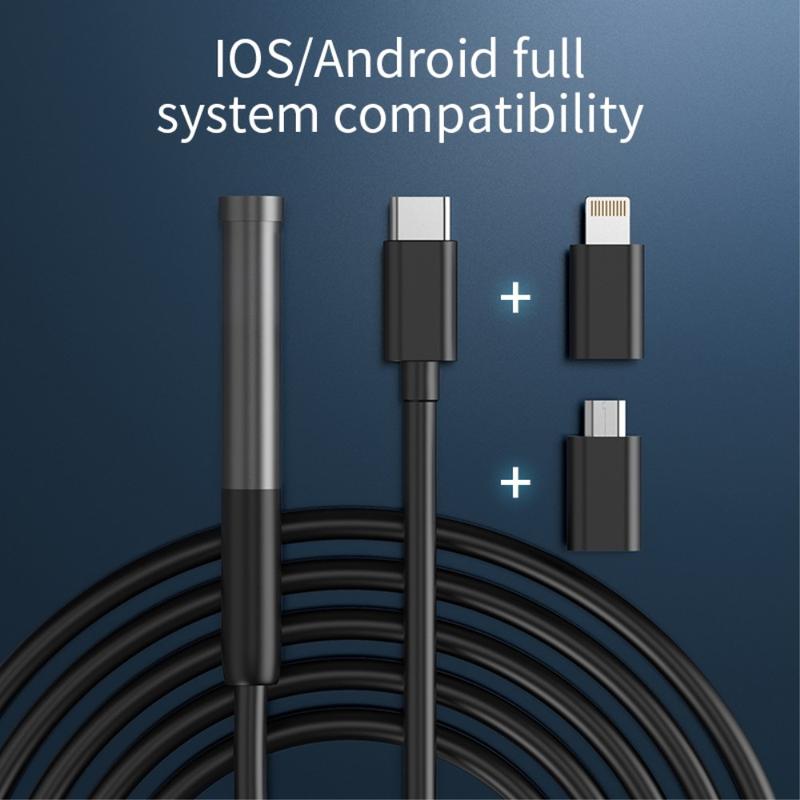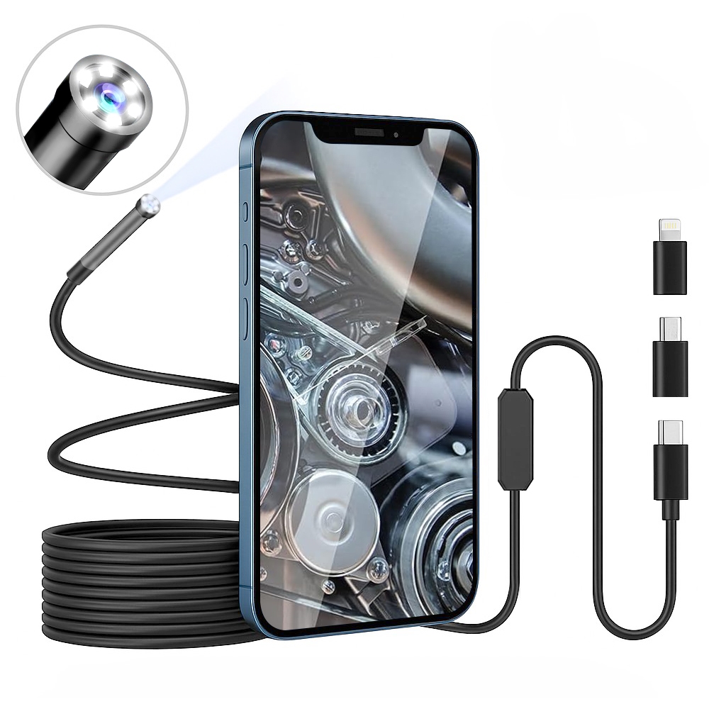 Vandtæt 8 mm USB-C endoskopkamera til iPhone, iPad, smartphones, tablet - USB-C/Lightning-adapter, USB-C/microUSB-adapter - 3 m