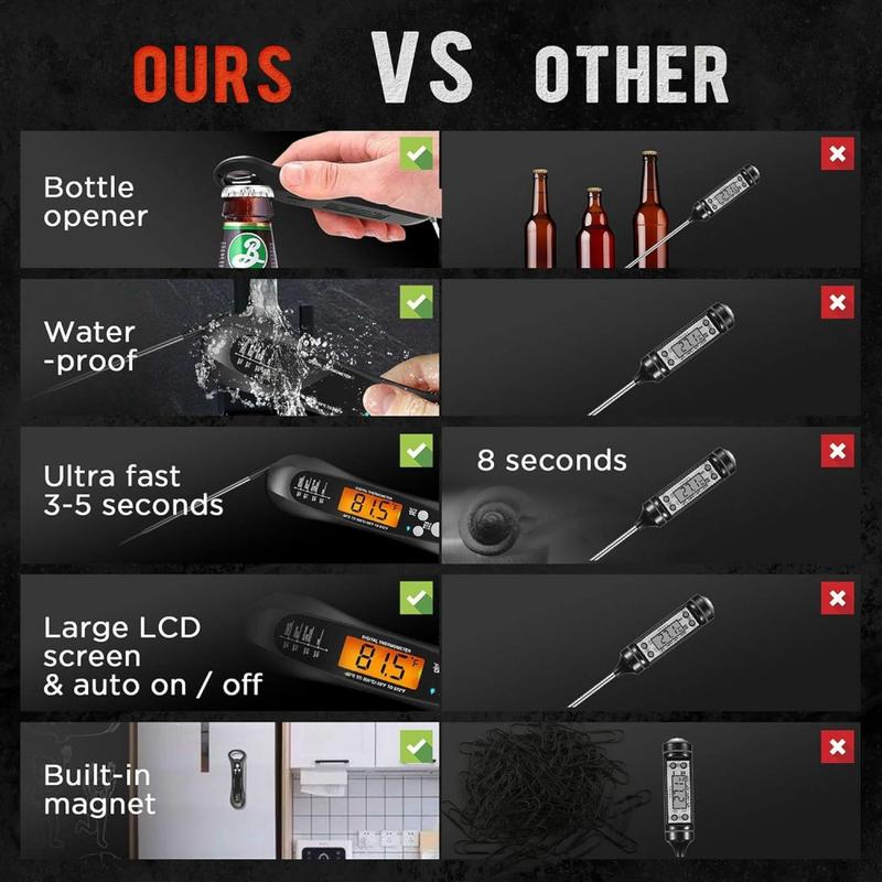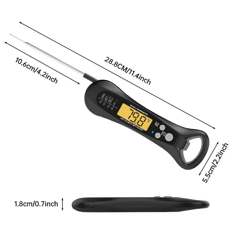 Vandtæt, foldbart digitalt madtermometer til grill og madlavning - 2-3 sekunders øjeblikkelig aflæsning, -50 °C til 300 °C, baggrundsbelyst LCD-skærm, magnet og flaskeåbner, IP67
