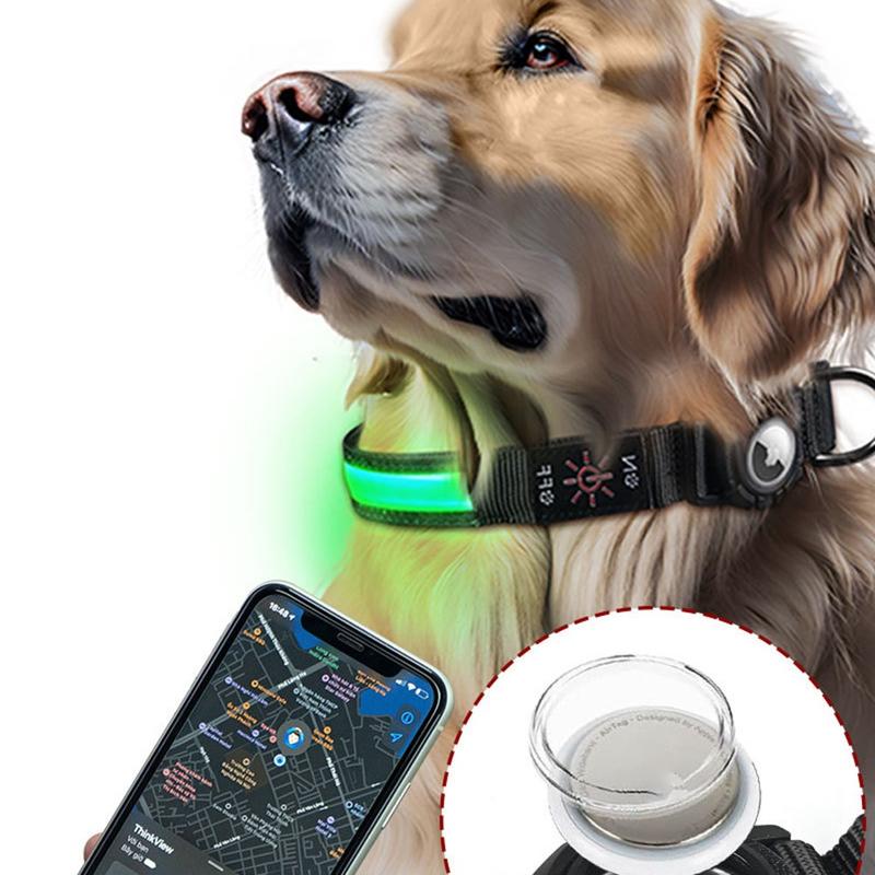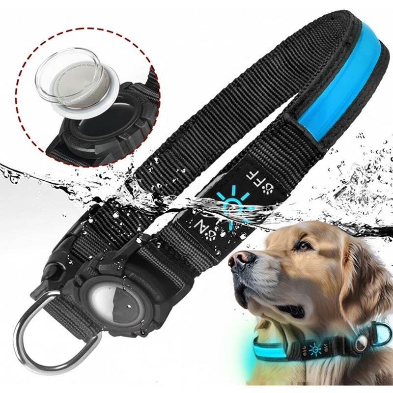 LED-hundehalsbånd med etui til Apple AirTag 1/2 - vandtæt anti-tab-halsbånd med genopladeligt lys