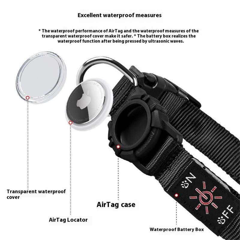 LED-hundehalsbånd med etui til Apple AirTag 1/2 - vandtæt anti-tab-halsbånd med genopladeligt lys