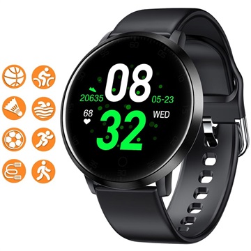 Dette vandtætte smartwatch K12 måler og informerer dig om dine daglige aktiviteter, søvnkvalitet, opkald, SMSer og notifikationer fra sociale medier. K12 smartwatch lader dig tjekke dit blodtryk, hjerterytme og ilt i blodet. Dette smartwatch K12 har 8 motionstilstande: gå, løb, svømme, cykle, basketball, badminton, fodbold og sjipning.