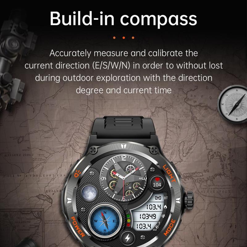 Vandtæt smartwatch KT76 i udendørs stil med kompas og lommelygte - 1.53"