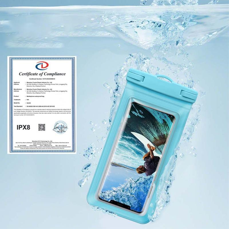 Fremstillet af PVC med gennemsigtig berøringsfølsomhed, der gør det muligt at bruge telefonen i vores vandtætte cover, uanset hvilken vandaktivitet du er i gang med.