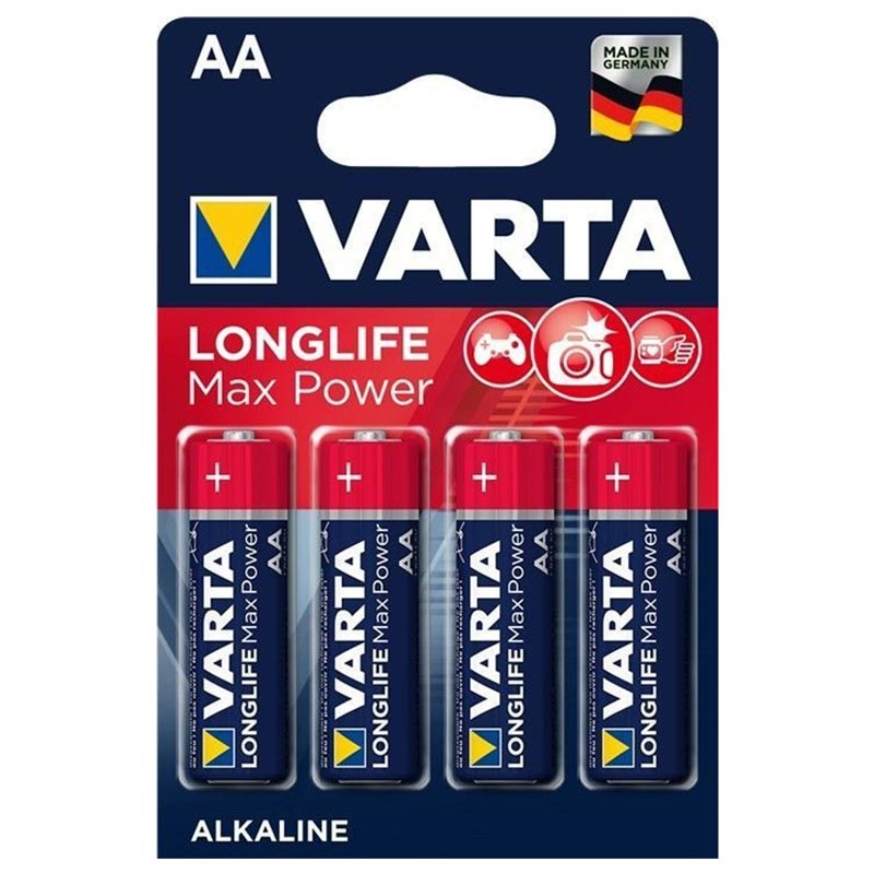 Varta Longlife Max Power AA alkaline batterierne er perfekte til enheder med et længevarende, kraftfuldt energiforbrug. Pakken inkluderer 4 AA batterier.
