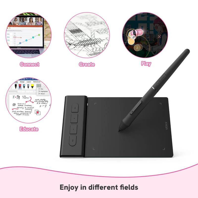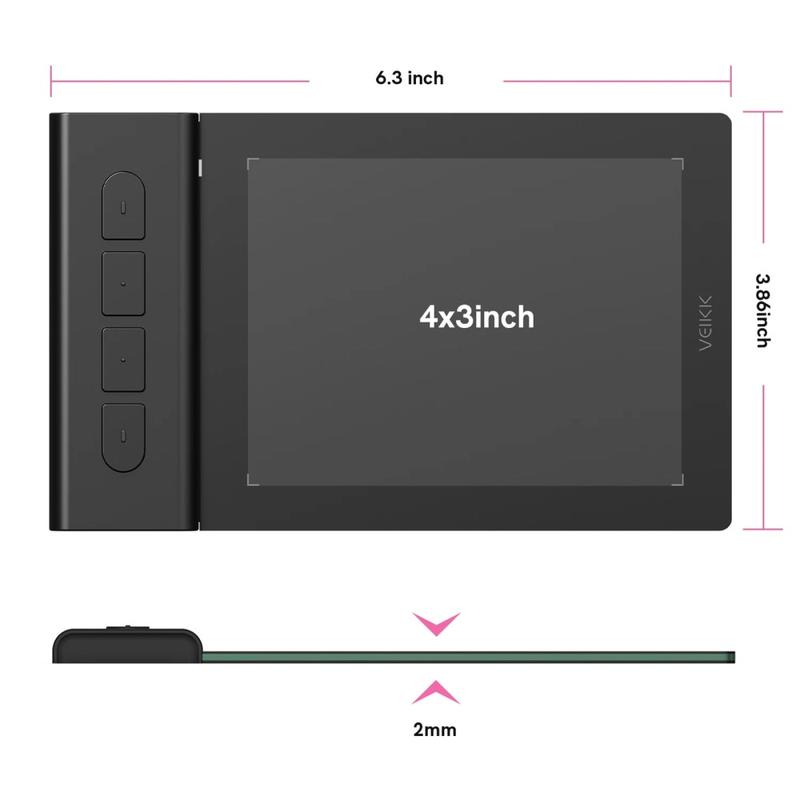 Den ultratynde og lette VEIKK Creator Pop VK430 pen-tablet er kun 2 mm tyk og vejer kun 84 gram med et aktivt område på 4 x 3 tommer, der ikke fylder på din arbejdsplads, og som gør det nemt at tage den med i en laptop-taske eller rygsæk, så den er nem at bære.