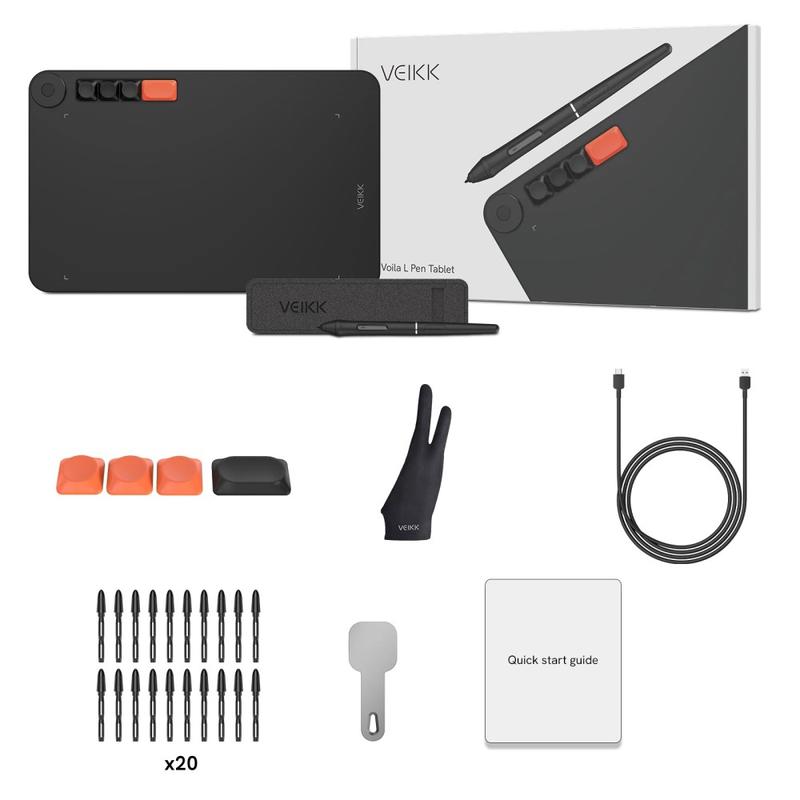 Veikk VO1060 290 PPS tegneplade med 60 graders hældning, 8192 niveau trykfølsom pen, 20 pennespidser - 12.6x7.9"