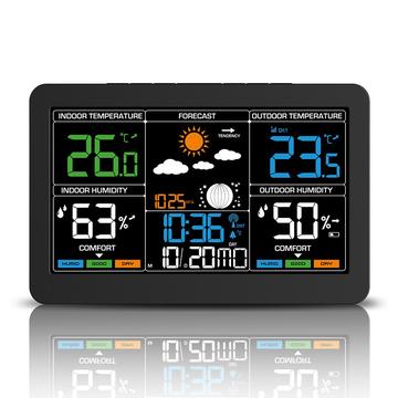 - Trådløs vejrstation med stort LCD-farvedisplay