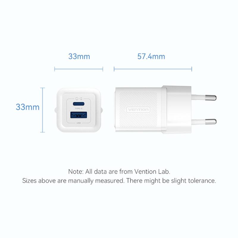 Vention FEQ 30W GaN hurtig vægoplader - dobbelt USB-C og USB-A