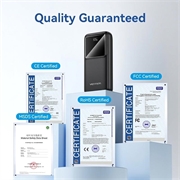 Det indbyggede digitale display viser det resterende batteriniveau tydeligt, hvilket gør det nemmere at holde styr på den tilgængelige strøm. Dette hjælper dig med at vide, hvornår det er tid til at genoplade powerbanken, i stedet for at stole på mindre præcise indikatorlamper. Et digitalt display giver ekstra bekvemmelighed for brugere, der foretrækker et klarere overblik over batteristatus under daglig brug.
