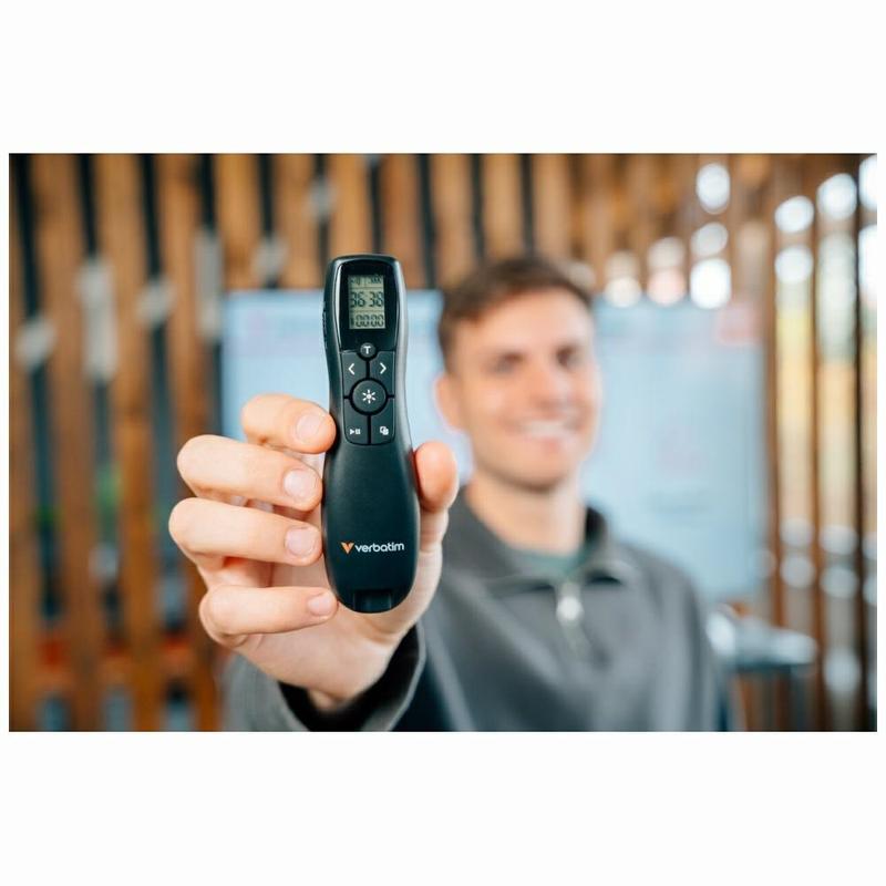 Verbatim Keynote trådløs præsentationsenhed med LCD-skærm - timer, rød laser 100 m, 30 m trådløs rækkevidde - USB-A-modtager + USB-C-adapter