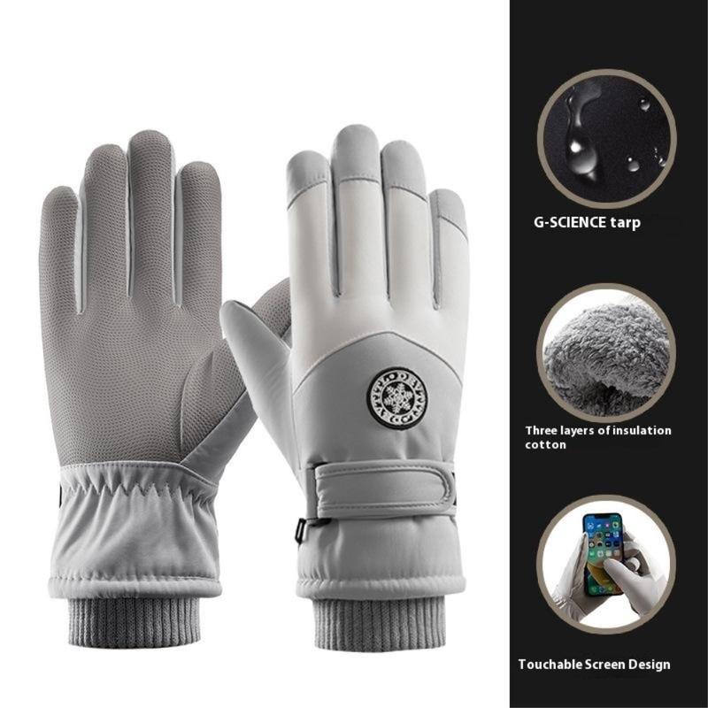 Vindtætte udendørs vinterhandsker med berøringsskærm - kvinder - grå/hvid