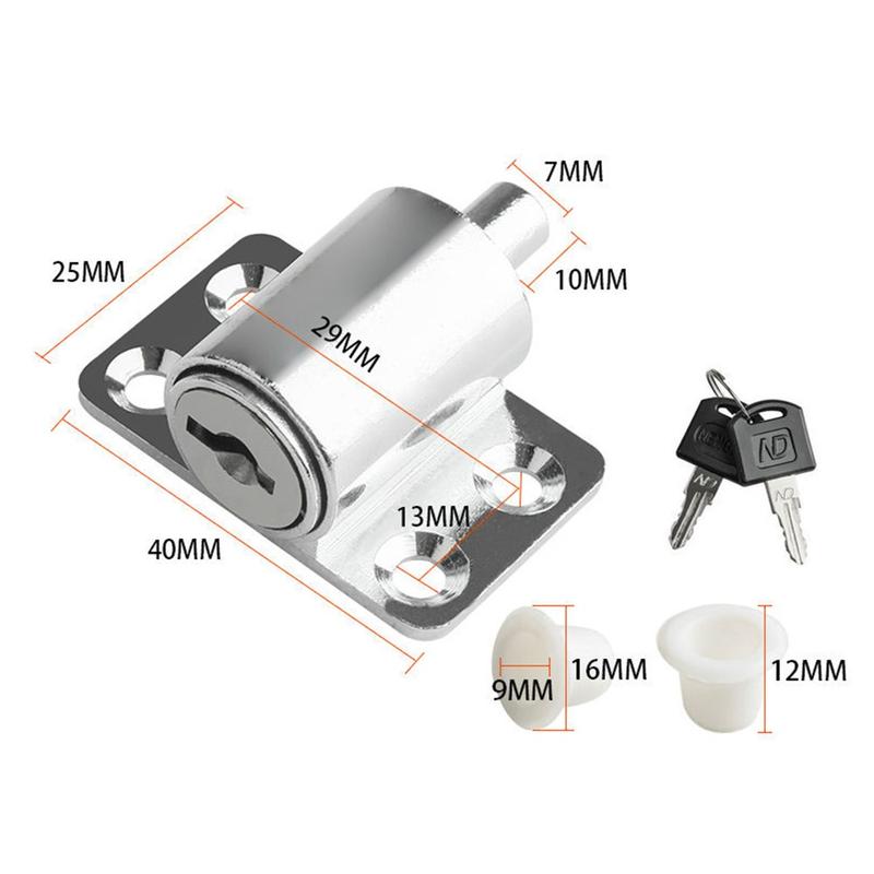 Vindueslås / sikkerhedslås med nøgle til vinduer og skydedøre - 40 x 25 mm skydedørs- og vinduesstop i aluminiumslegering med nøglefri sikkerhed