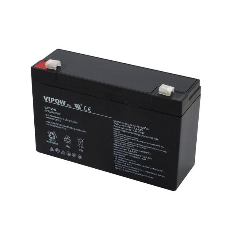 Vipow LP12-6 AGM-batteriet er et vedligeholdelsesfrit og lækagesikkert batteri af VRLA-typen fremstillet i AGM-teknologi. Det er designet til både cyklisk arbejde og bufferarbejde og kan arbejde i enhver position. Det ventilregulerede VRLA-blysyrebatteri er genopladeligt og reguleres af en ventil. AGM-typen har en absorberet glasmåtte, hvor elektrolytten absorberes i separatoren, der er lavet af glasmåtte.