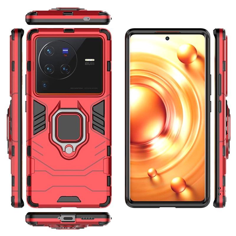 Vivo X80 Pro Hybrid Cover med Ring Holder - Rød