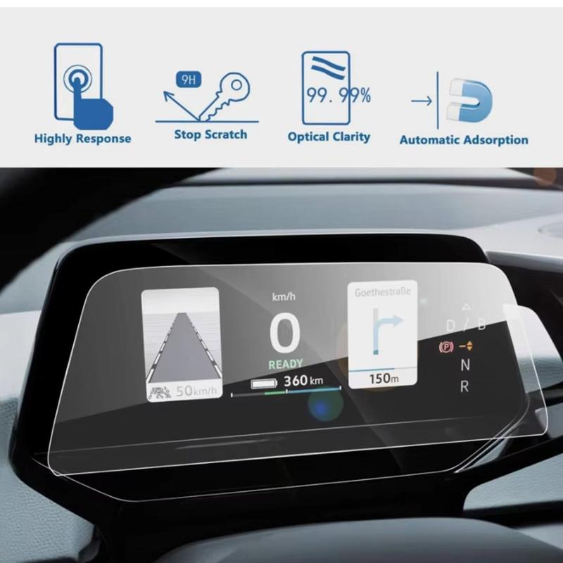 Din instrumentbrætsskærm er en af de mest anvendte overflader i bilen, så det er fornuftigt at beskytte den tidligt. Denne film af hærdet glas tilføjer et stærkt beskyttende lag uden at ændre skærmens oprindelige fornemmelse. Den hjælper med at holde skærmen renere, klarere og bedre beskyttet mod hverdagens mærker, hvilket gør den til en smart opgradering for enhver Volkswagen ID.3-ejer.