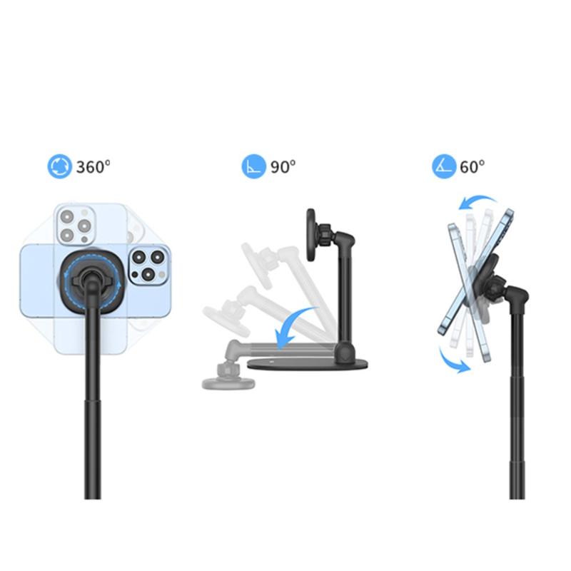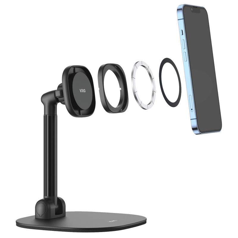 Vrig MG-04 Roterende magnetisk bordstander til iPhone 12-17 og MagSafe-etuier - justerbar 22-36 cm telefonholder i kulstofstål