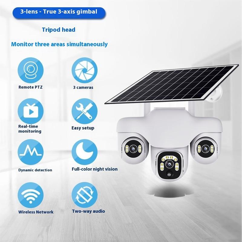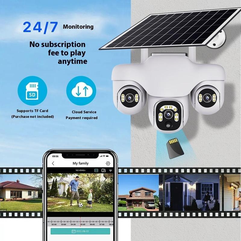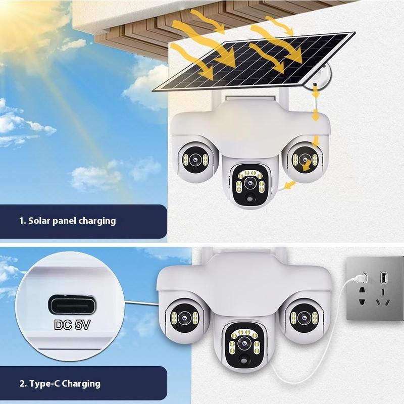 VTS31 V380 solcelledrevet PTZ-overvågningskamera med tredobbelt linse - udendørs WiFi-overvågningskamera med bevægelsesdetektering