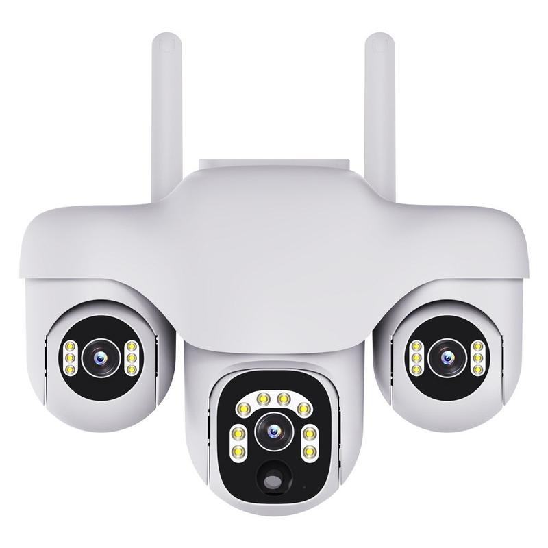 Denne model kombinerer panoramadækning, smarte detekteringsfunktioner og nattovervågning i ét design, der er klar til udendørs brug. Takket være dets layout med tre linser og roterende PTZ-struktur kan det overvåge et meget større område end mange standardkameraer med en enkelt linse, hvilket hjælper med at reducere blinde vinkler omkring din ejendom.