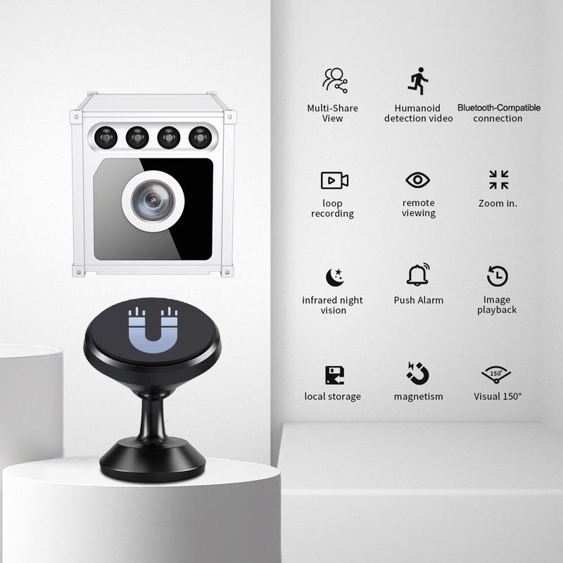- Kompakt indendørs WiFi-overvågningskamera med magnetbeslag til fleksibel placering