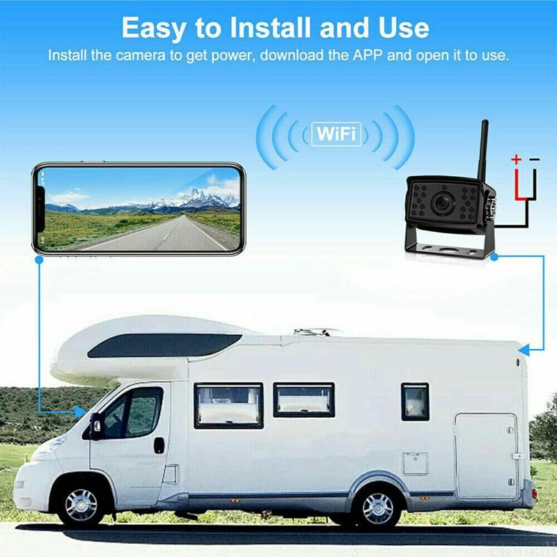 Opgrader sikkerheden i varevogne, lastbiler og autocampere med et trådløst HD-kamera, der streamer en krystalklar 170° visning til enhver smartphone - ingen kabler, ingen blinde vinkler.
