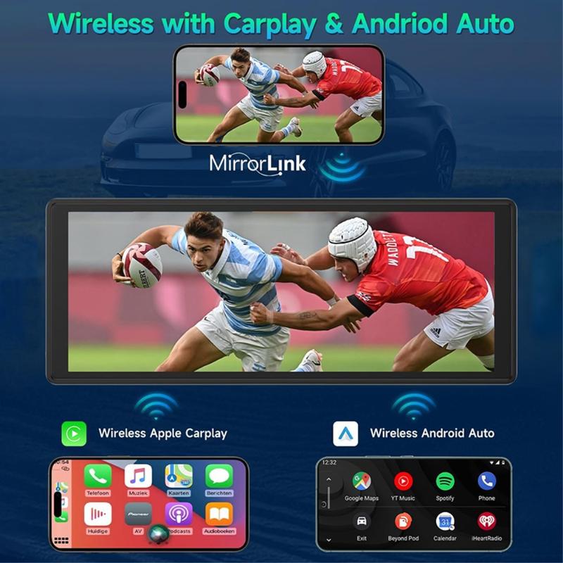W514A 10.26" Dash Cam CarPlay-skærm med bagkamera - AHD med to optagelser, Bluetooth 5.0, FM-radio