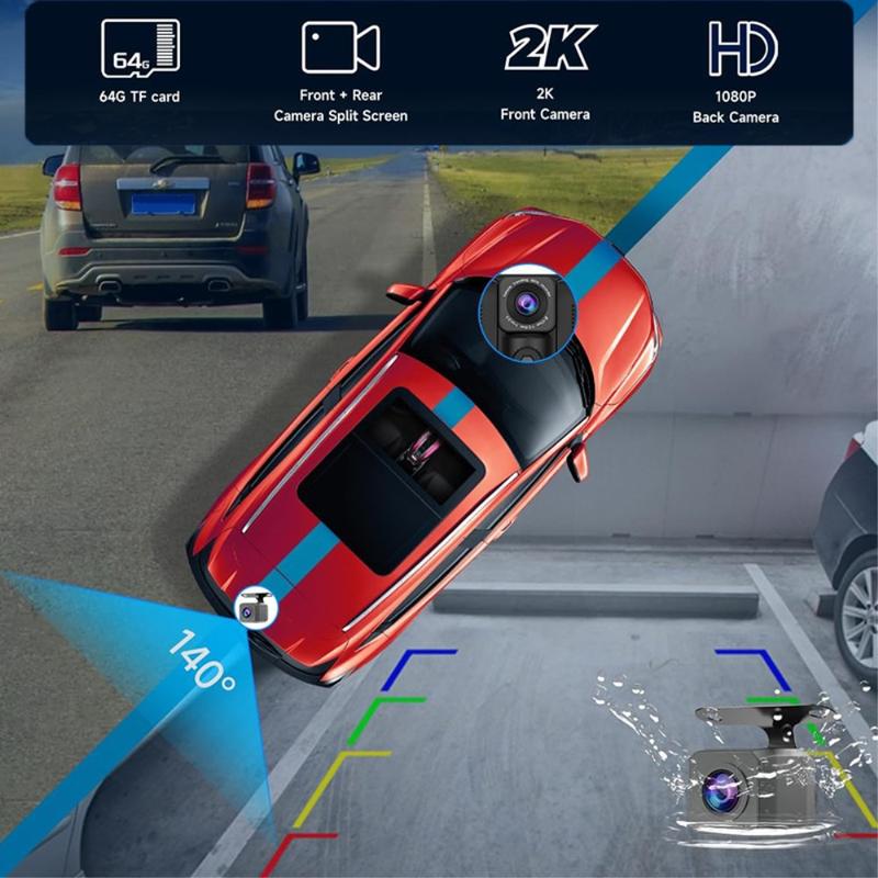 - Dashcam med to optagelser: Dashcam foran fanger vejen i detaljer, mens det bageste AHD-kamera samtidig optager bag dit køretøj for omfattende dækning.
