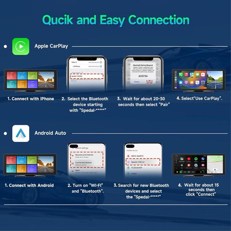 Opgrader din bil med W514A 10.26-Inch Portable CarPlay Screen & Dash Cam, og nyd en smartere, sikrere og mere bekvem rejse, hver gang du er ude at køre.