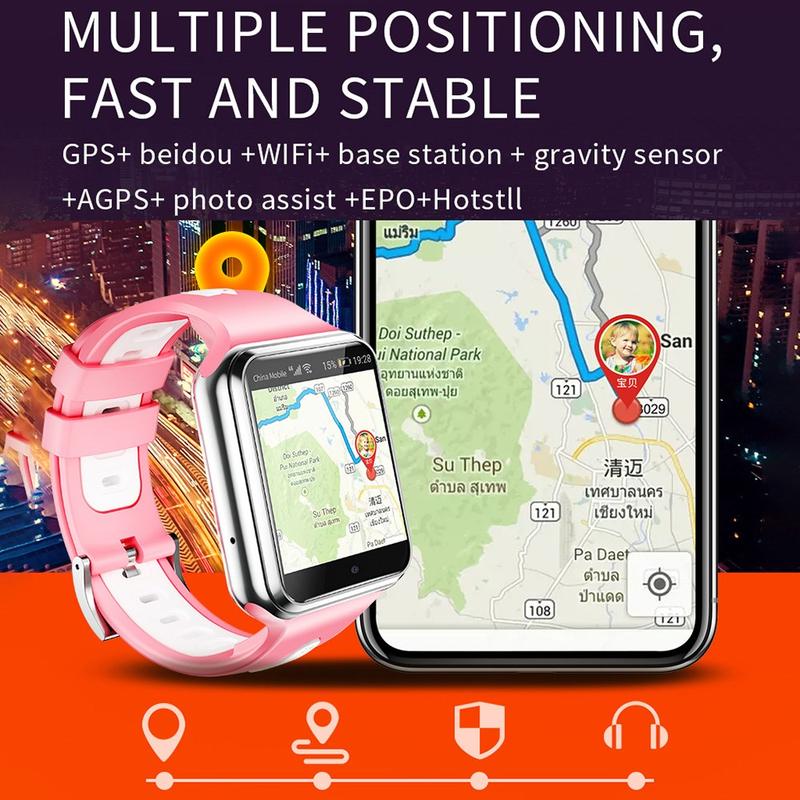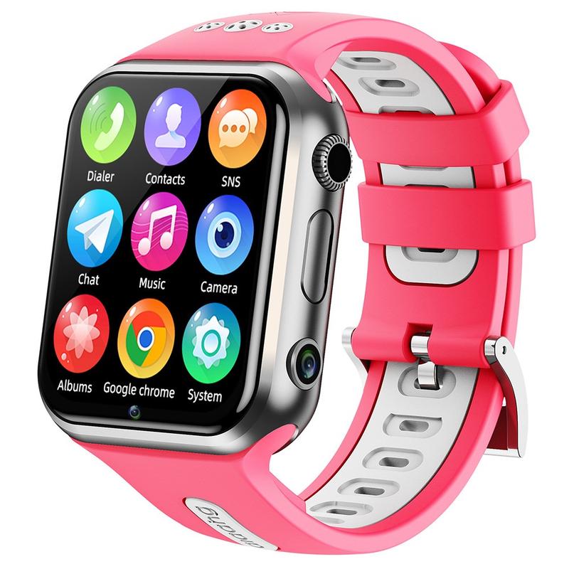 W5PRO 4G børneur med dobbelt kamera 2+16G slidstærkt 1.83" IPS HD smart phone-ur - Sølv / Pink