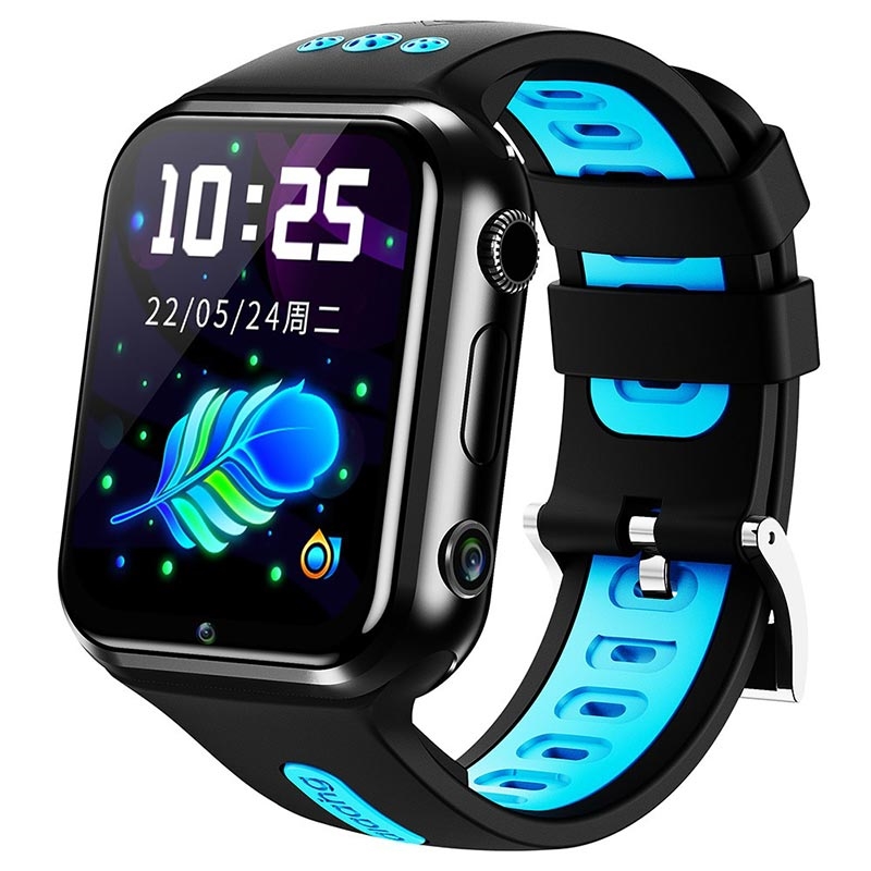 W5PRO 4G børneur med dobbelt kamera 2+16G slidstærkt 1.83" IPS HD smart phone-ur - sort/Blå