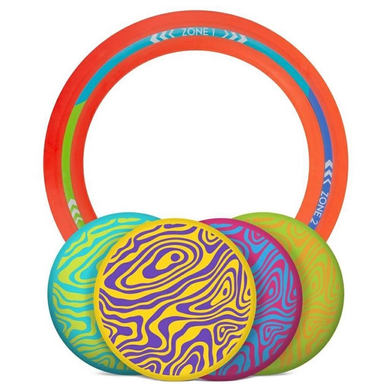 - Det bærbare kastespil kombinerer elementer fra discgolf og boccia til sjov, færdighedsbaseret udendørs leg.