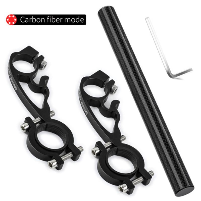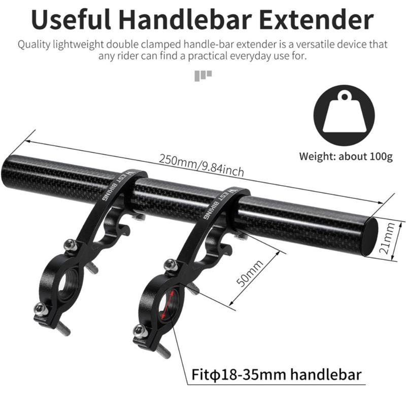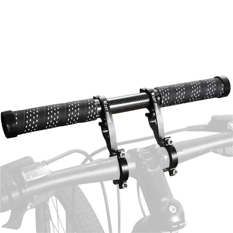 WEST BIKING Cykling Kulfiber Cykelstyr Forlænger Dobbelt Klem Beslag til Cykellygte GPS Computer