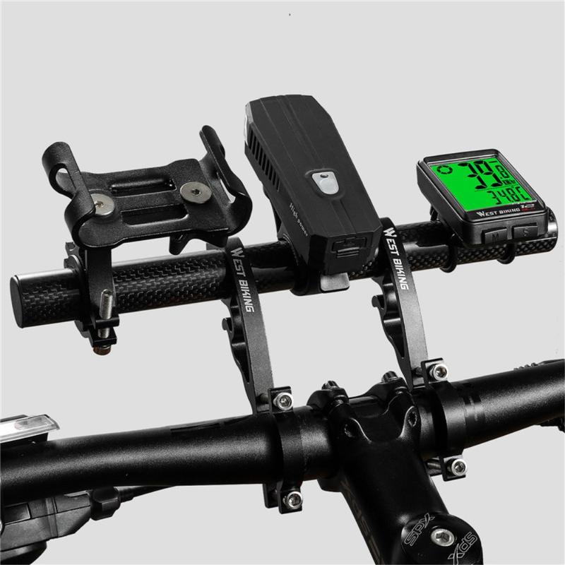 WEST BIKING Aluminiumslegering Cykelstyrforlænger Dobbelt klembeslag til cykellygte GPS-computer