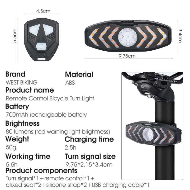 WEST BIKING YP0701313 Genopladelig cykel-LED-baglygte Fjernbetjening Cykel Cykling Blink Advarsel Baglygte med Horn Påmindelse Tone